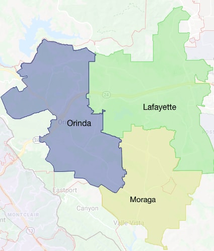 The 3 Contra Costa towns of Lafayette, Moraga, and Orinda are beautiful suburbs of San Francisco and are commonly referred to as “Lamorinda.” They are located just east of the Berkeley Hills and each offers unique characteristics, neighborhoods, and points of interest. Two of the three towns are served by the Bay Area Rapid Transit system (BART). Lamorinda is conveniently located in proximity to Oakland and San Francisco International Airports.